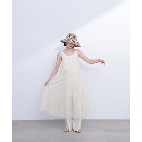 [型番:1664240601]ふんわり纏えるチュールティアードキャミワンピースは重たい印象にならず、旬なレイヤードスタイルに仕上げてくれる1枚。肩紐は長さ調節可能。Tシャツ×デニムスタイル、シンプルなワントーンコーデの上に重ねるだけで旬な着こなしが叶います。