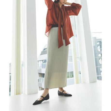 華やかな箔プリントが施されたアコーディオンプリーツのスカート。マキシな丈感とエレガンスな箔プリントが女性らしさを演出します。ウエストゴムで履き心地も◎デイリー使いしやすいブラックとスタイリングに輝きを添えるシルバーの2色展開で、シンプルなトップスに合わせるだけでコーディネートが彩る1枚です!