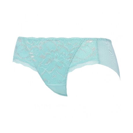 大柄のマリーゴールドの編みレースを贅沢に使用したレーシーなデザイン。サイドはレースを重ね合わせてフェミニンなアクセントに。