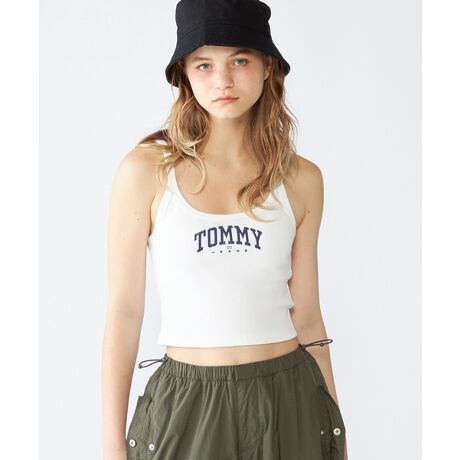 Y2Kファッションを彷彿とさせるクロップド丈のタンクトップ。スリムでコンパクトなシルエットはトレンドのボリュームボトムスとも相性抜群です。フロントにはTOMMY JEANSのバーシティロゴをプリント。生地はストレッチ性があり、締め付けを感じさせないストレスフリーな着心地です。