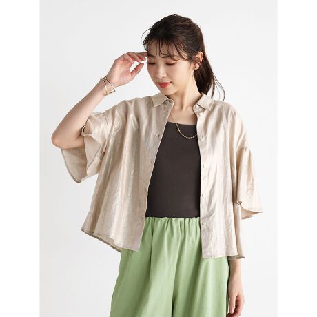 フレアスリーブメタリックリネンシャツ