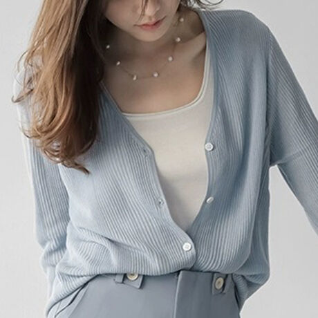 冷房対策にも便利なリブニットVネックカーディガンが登場♪<br>