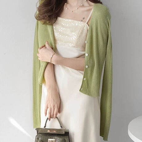 冷房対策にも便利なリブニットVネックカーディガンが登場♪<br>