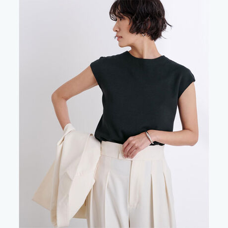 使い勝手の良いベーシックなフレンチスリーブニットトップス。◆DETAILシンプルで1枚でもジャケットのインナーにもぴったりです。プチハイネックのデザインがモードさと女性らしさを演出してくれます。フレンチスリーブで気になる腕もカバーして頂けます。[型番:BDXU1613]