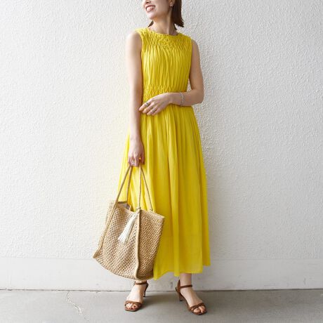 一枚でもサマになるワンピースは普段は勿論、リゾートスタイルまで小物合わせを変えて楽しめます。
