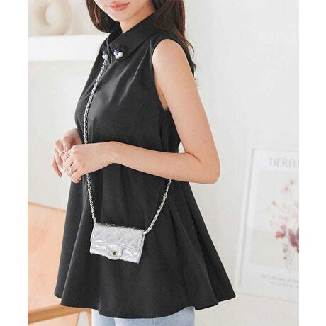襟元のビジューモチーフが華やかに煌めくノースリーブブラウス。コンパクトな襟がクラシカルで大人可愛い印象に。キレイめパンツに合わせてオフィスカジュアルな着こなしからカジュアルなデニム合わせにも女性らしさを演出してくれる大人ブラウスです。