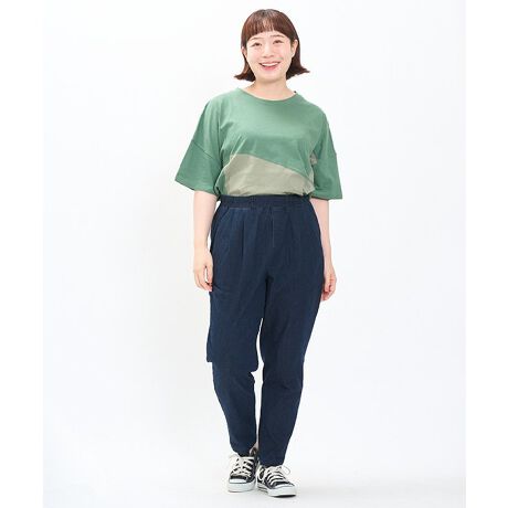 ウエストからヒップにかけて程よくゆとりがありながら ひざ下から裾にかけてはすっきりとさせたシルエットが特徴です。