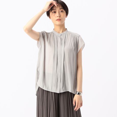 【セットアップ対応】スプリットジョーゼット ピンタック・ギャザーブラウス