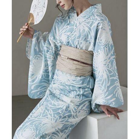 asaka アサカ 綿麻仕立て上がり浴衣+しわ兵児帯 2点セット