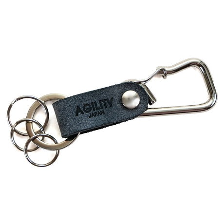 着脱に便利なカラビナ型の金具をメインに、ポイントに革をあしらったキーホルダーです。片手でも簡単に着脱ができるカラビナ型の金具を使用。バッグの金属部分やパンツのベルトループに取り付けてお使いいただけます。ネジを通す革の穴部分には穴の広がりを抑えるためにハトメを入れています。先端の25mmのキーリングには20mmのキーリングが1つと16mmのキーリングが2つついています。20mmのリングは車のスマートキー(リモコンキー)などを装着し、2つある16mmのリングはそれぞれノーマルなカギの装着を想定しました。25mmの元リングに鍵をつけることもできます。真鍮製のカラビナは使い込むうちにアンティークゴールドへ変化していきます。