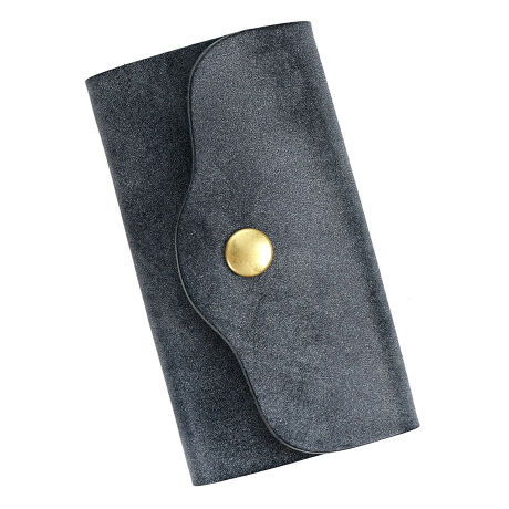 装飾を一切省き、ミシンを使わずに革と金具だけで組み立てた、シンプル構造の5連キーケースです。三つ折りになった本体はスナップ開閉式。鍵を取り付ける金具の部分は、キーフック式ではなく二重リング式なので、ヘッドの大きな鍵や車のリモコンキーも取り付けることができます。※リモコンキーなど大きな鍵は、本体には収まらないので外に出して使用します。5つのキーリングはそれぞれ独立可動するので、よく使う鍵だけを外に出しておくことができます。