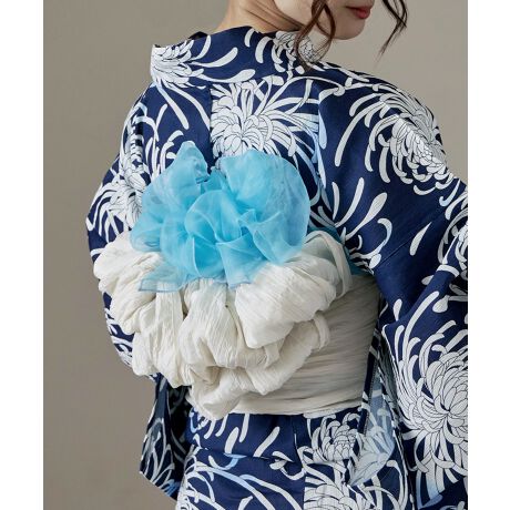 夏の着物や浴衣にぴったりのオーガンジー飾り帯(プチ兵児帯)は、軽やかな透け感とふんわりとした生地感が特徴。