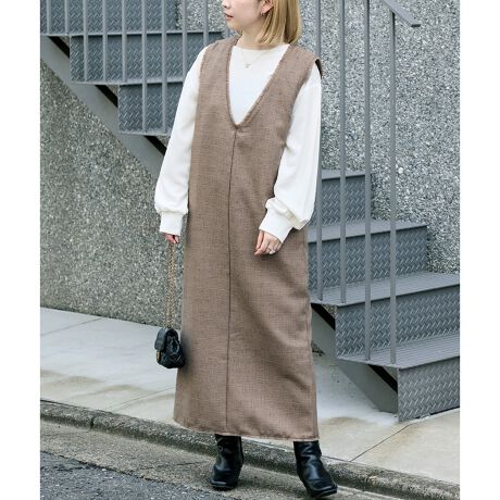胸元、裾にフリンジを効かせる事で、抜け感のある印象に仕上げたデザイン。