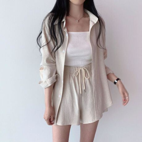 程よいゆとりあるサイズ感でラフさとリラックス感を兼ねそなえたシャツとショートパンツのセットアップ!<br>