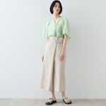 ワイドパンツやバレルパンツなどスッキリとしたボトム合わせがおすすめ。