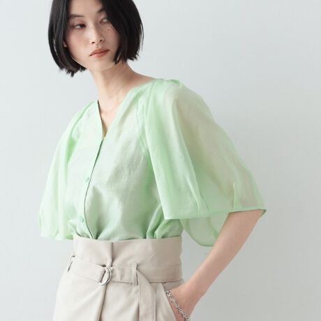 ケープのように大胆にデザインされたスリーブが際立つ存在感のあるブラウス。