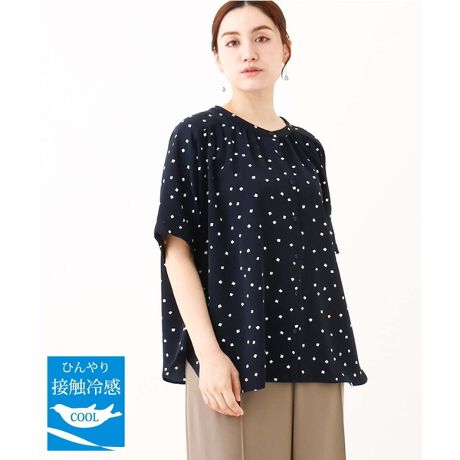 【大きいサイズ/11号サイズあり/接触冷感】スクエアドットブラウス