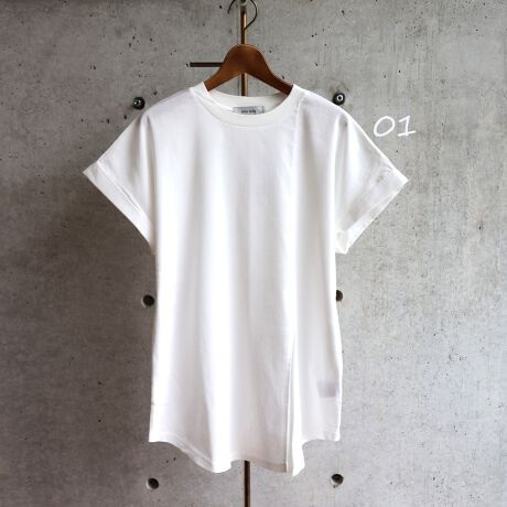 心地よい素材です。大胆な前スリットがデザインポイントのチュニックTシャツです。