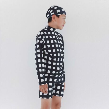 スイムキャップとラッシュガードとショートパンツの3点セットです。