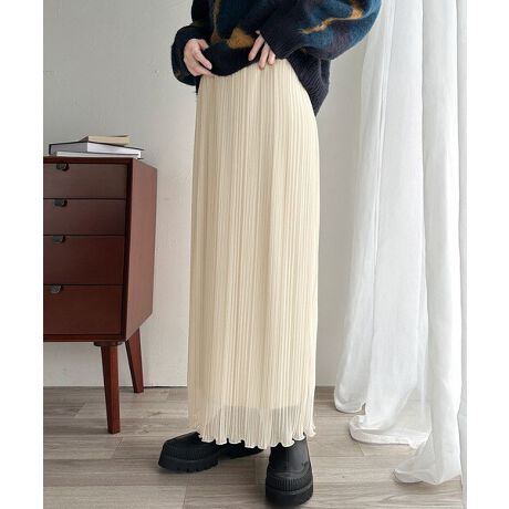 光沢感のあるシャイニーシアー素材と、ランダムプリーツが魅力的な着映えスカート。