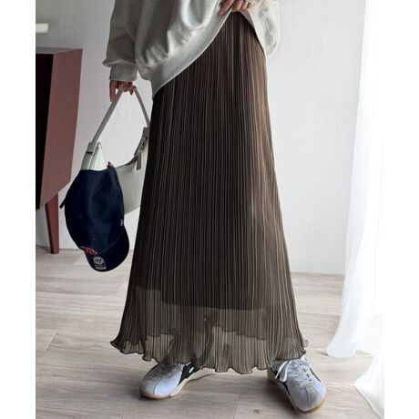 光沢感のあるシャイニーシアー素材と、ランダムプリーツが魅力的な着映えスカート。