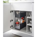 扉タイプのシンクで使えるスライド式のバスケット収納です。