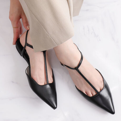 ポインテッドトゥTストラップフラットパンプス