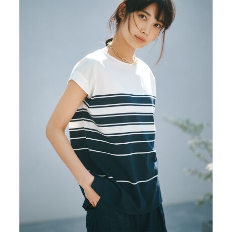 着合わせやすさも残しながら、遊び心の効いた万能ボーダーカットソー
