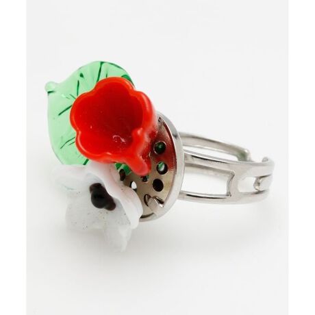 [型番:LEIZ2703-2024]草花をブーケにしたような、繊細なベネチアンガラスのリングです。存在感があり、指先を美しく見せてくれます。