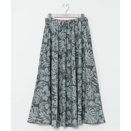 汗ばむ肌にもサラリと気持ちの良い麻レーヨン素材のロングスカート。ハワイを代表するボタニカル柄をヴィンテージ風にプリント。ウエストはゴム紐で調節可能です。ポケット付き。