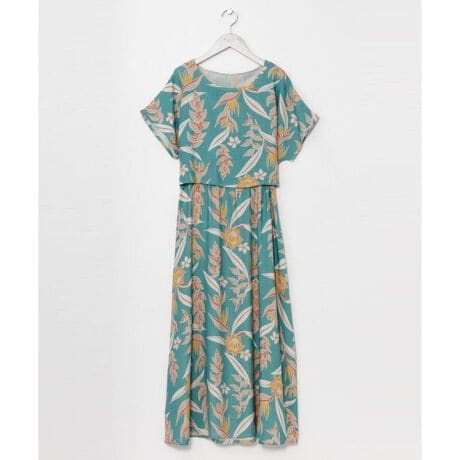 レーヨン麻素材を使用したワンピース。さらりとした肌触りで快適な着心地です。ハワイを代表するボタニカル柄をヴィンテージ調にプリントし、ウエストゴム仕様で自然なメリハリを演出。セットアップ風のデザインが魅力です。