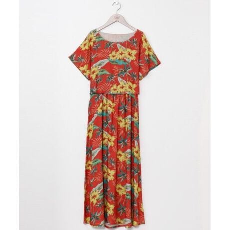 レーヨン麻素材を使用したワンピース。さらりとした肌触りで快適な着心地です。ハワイを代表するボタニカル柄をヴィンテージ調にプリントし、ウエストゴム仕様で自然なメリハリを演出。セットアップ風のデザインが魅力です。