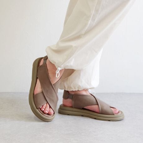 ソフトなレザーを使用したクロスベルトサンダル。