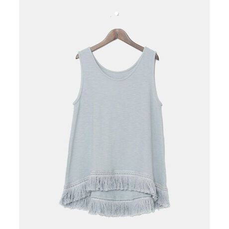 [型番:CAS-2221-2024]伸縮性のある素材に、フリンジがついたタンクトップ。シンプルなコーデにも羽織と合わせても映える一枚。インナーとしてもトップスとしても使える万能アイテム。