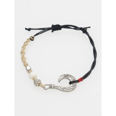 [型番:IJCZ0124-2024]幸せを釣り上げるという意味の込められた「フィッシュフック」モチーフ付きのアンクレット。ワイルドな色使いとジュート素材でリゾートを味わいたい時に。