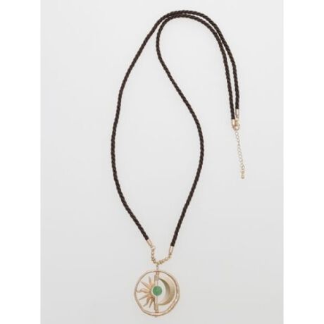 [型番:CSOZ0110-2024]宇宙をイメージしたモチーフに天然石の色がエキゾチックなネックレス。動きのあるモチーフは見る角度によって違った雰囲気を見せてくれます。艶のあるコード紐とアンティーク調の塗装が施されたモチーフはコーデに上品な魅力を与えてくれます。