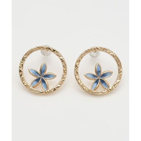 [型番:4CSZ2113-2024]上品な印象のピアス。プルメリアとハワイアンジュエリー調の柄が彫られたサークルモチーフを組み合わせました。HAWAIIでは幸福を舞い込むといわれるプルメリアモチーフはギフトにもおすすめです。