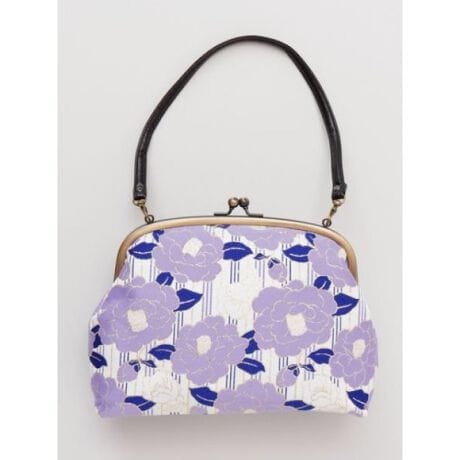 [型番:7JNP0118-2024]大きな椿の花を大胆にあしらった、がま口ハンドバッグ。キラキラとした金糸がアクセントになり、女性らしさをより引き立たせます。椿の花言葉は「誇り」「慎ましい優しさ」。長財布も入るサイズ感と女性らしさを感じさせる上品なデザインは和装にも洋装にも。
