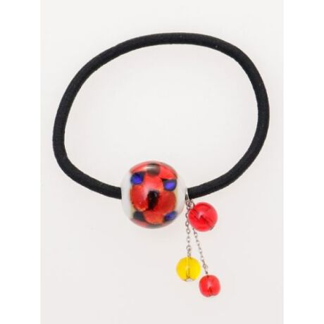 [型番:7CNZ0107-2024]ホタル玉では定番の青色と日本らしい金魚と桜を色で表現したホタル玉ヘアゴム。色鮮やかで大きなホタル玉はまとめ髪を美しく華やかに魅せます。一緒についているガラスのモチーフがより春らしさや夏らしさを演出してくれます。