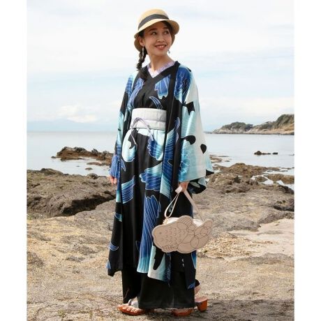 優雅にたゆたう金魚を大胆にあしらったデザインが目を惹く、長丈の着物羽織。着物に倣(なら)い、日常的に和を身に纏って華やかな和装カジュアルスタイルに。柔らかなレーヨン素材で、さらりとした着心地。サイドポケット付き。UVカット加工が施されているので、強い日差しでも安心です。