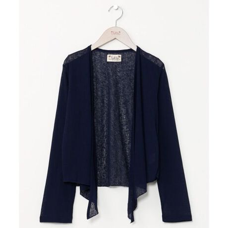 凹凸感のあるストライプの編地でさらりとした肌触りのカーディガン。しわになりにくいポリエステル素材で、風に揺れるシルエットが上品な印象を感じさせてくれます。サッシュスカートやワンピースコーデがおすすめ。持ち運びに便利な巾着付き。