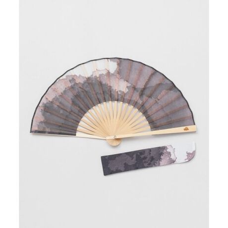[型番:7XCP4201-2024]色がにじんで広がる、色の遊びが入った竹扇子。透け感のある生地が涼しげ。持ち運びに便利な専用袋付き。オリジナルの刻印入り。