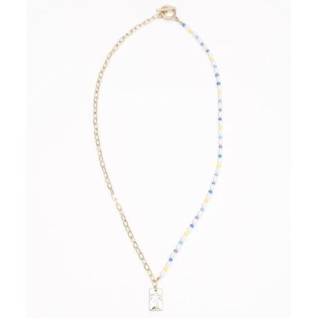 [型番:46PZ3105-2024]パールとメタルの組み合わせがカラフルなビーズネックレス。パームツリーのモチーフがHAWAIIを感じさせてくれます。シンプルコーディネートのアクセントに。