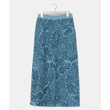 ボタニカル柄やトライバル柄、パームツリーやバナナリーフ柄を組み合わせたスカート。ハワイの自然を感じさせるデザインで、やわらかな裏毛素材が快適な着心地を実現。リラックス感がありながらも華やかさを添える一枚です。