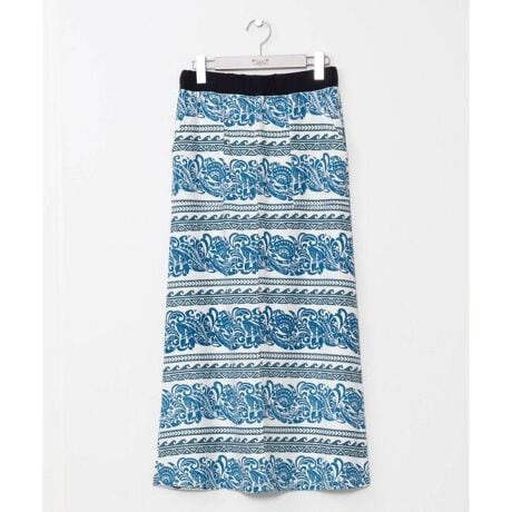 [型番:47U-4102-2024]ボタニカル柄やトライバル柄、パームツリーやバナナリーフ柄を組み合わせたスカート。ハワイの自然を感じさせるデザインで、やわらかな裏毛素材が快適な着心地を実現。リラックス感がありながらも華やかさを添える一枚です。
