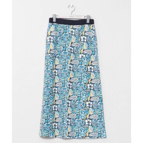 [型番:47U-4102-2024]ボタニカル柄やトライバル柄、パームツリーやバナナリーフ柄を組み合わせたスカート。ハワイの自然を感じさせるデザインで、やわらかな裏毛素材が快適な着心地を実現。リラックス感がありながらも華やかさを添える一枚です。