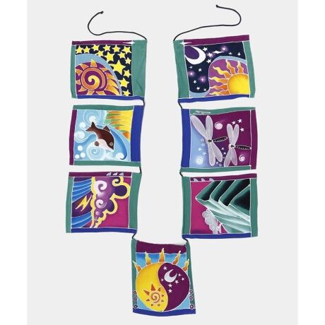 バリ直輸入の鮮やかなガーランド。伝統技法「バティック染め(ろうけつ染め)」を用いた手法で、一枚一枚発色がよく目を惹くデザインです。お部屋の装飾やキャンプの飾りつけなど、インテリアのワンポイントにおすすめです。