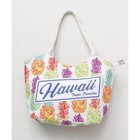 ロープハンドルが印象的なトートバッグ。ハワイを感じるデザインと軽やかな素材で、デイリーにもお出かけにも活躍。開口部はファスナー付きで安心。内ポケット付きで使い勝手も抜群のアイテム。
