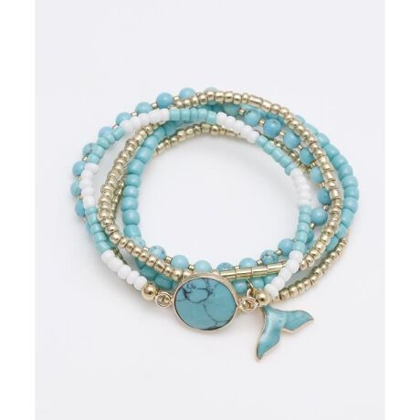 [型番:42CZ4204-2024]ホエールテールのチャームがついたターコイズのセットブレスレット。気分に合わせて重ね付けや単品つかいとアレンジして楽しめます。大切な人の幸運を祈るラッキーアイテムとして、プレゼントにもおすすめ。
