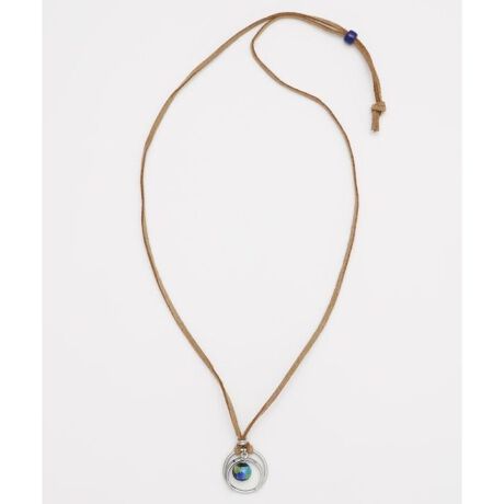 [型番:CEPZ3101-2024]大地の輝きを閉じ込めたような、神秘的なホタル玉のネックレス。虹彩の輝きを放つホタル玉と月の組み合わせで胸元を美しく魅せます。革紐についたビーズで長さ調節が可能。